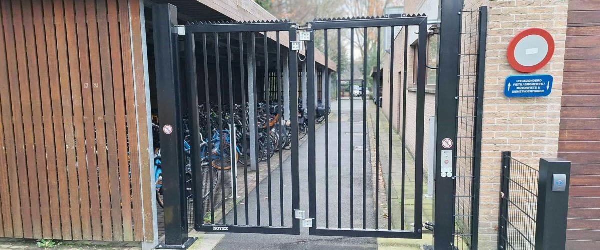 Voor de toegang tot de fietsenstalling hebben we een Quick Folding Gate single leaf geïnstalleerd. Deze poort, die opent aan één zijde, staat bekend om zijn uiterst snelle openings- en sluitingstijd, wat zowel veiligheid als gebruiksgemak garandeert.